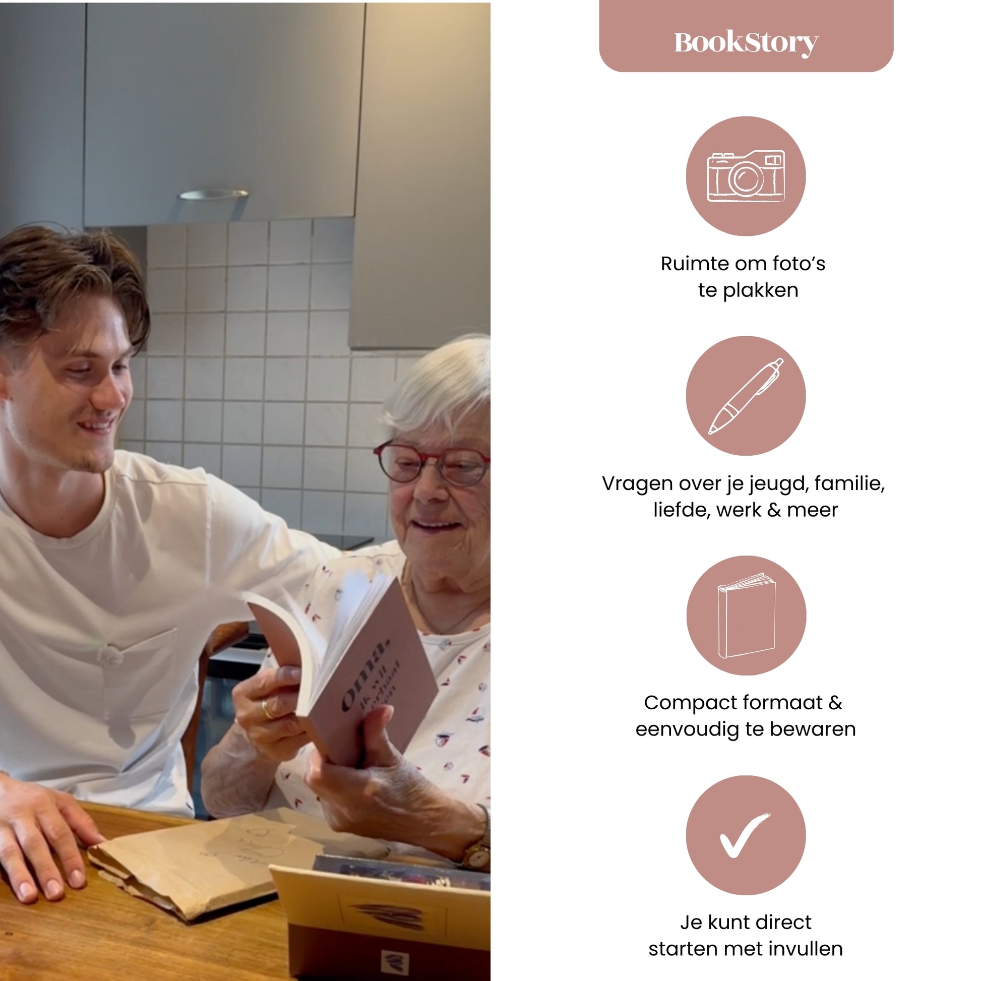 Een prachtig vormgegeven invulboek vol met meer dan 260 vragen, zorgvuldig samengesteld om verhalen, herinneringen en anekdotes boven te halen die anders misschien verloren gaan.